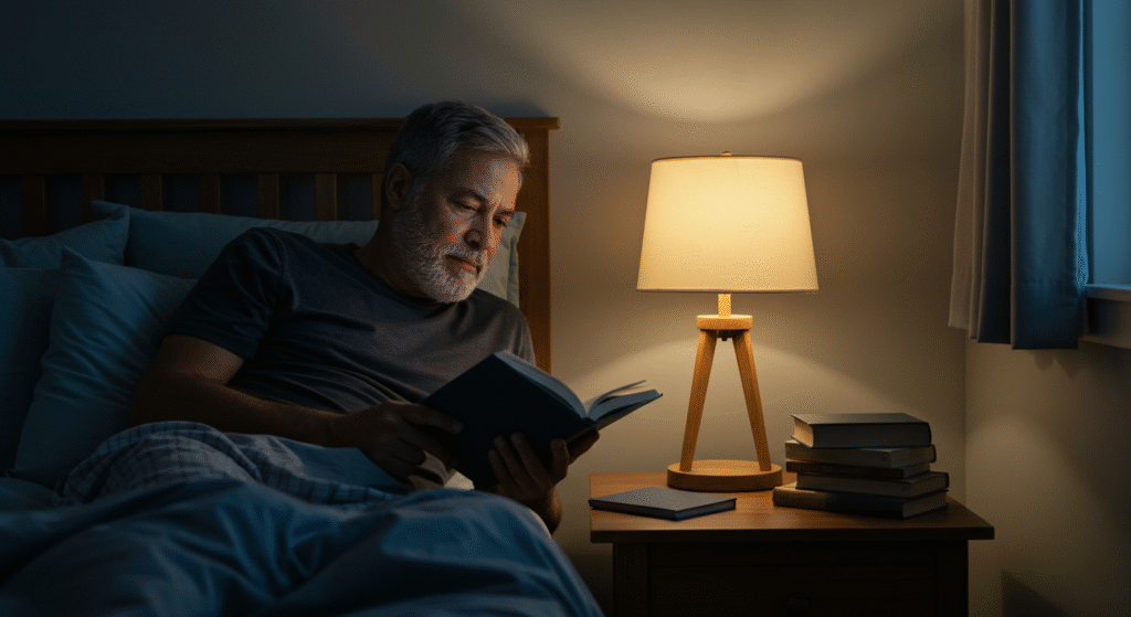 Men need 7–9 hours of restful sleep to maintain hormone balance, muscle recovery, and mental sharpness. A cool, dark, and quiet room is ideal for deep rest.
