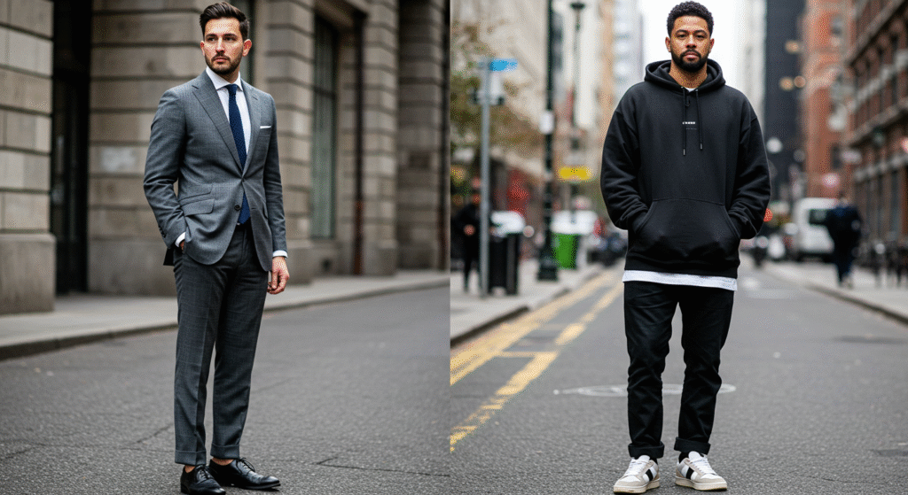 Clothes alone don’t complete the look. Grooming, posture, and confidence make the difference between wearing an outfit and being owned by it. Streetwear thrives on relaxed confidence, while suiting requires sharper presence. In both cases, neat grooming, clean shoes, and good posture are non-negotiable. Confidence ties everything together, making any style feel authentic.