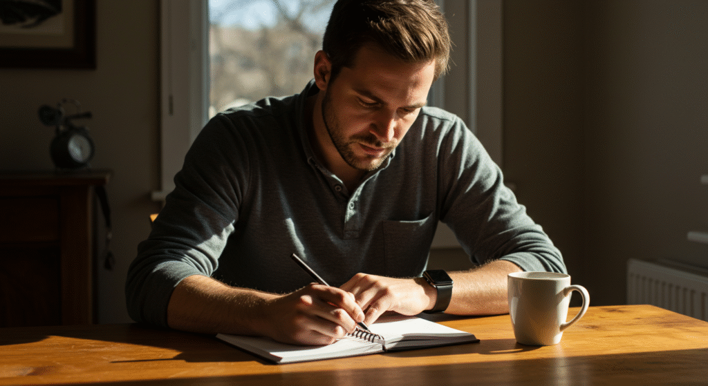 Writing down your thoughts, goals, and reflections clears your mind and strengthens clarity. Journaling helps men process emotions and maintain a vision for their personal growth.